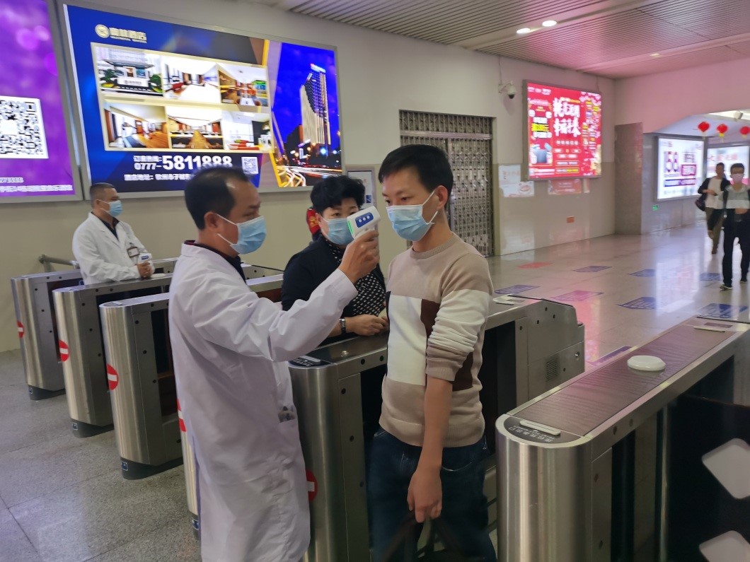 南宁市交通运输局做好车站消毒、通风、体温检测、疫病防范知识宣传等疫情防控措施。(南宁市交通运输局供图)