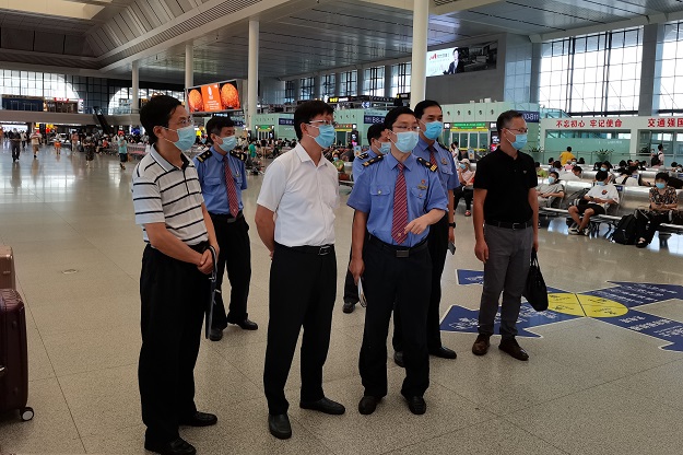 李一川在南宁火车东站详细了解疫情防控工作落实情况。