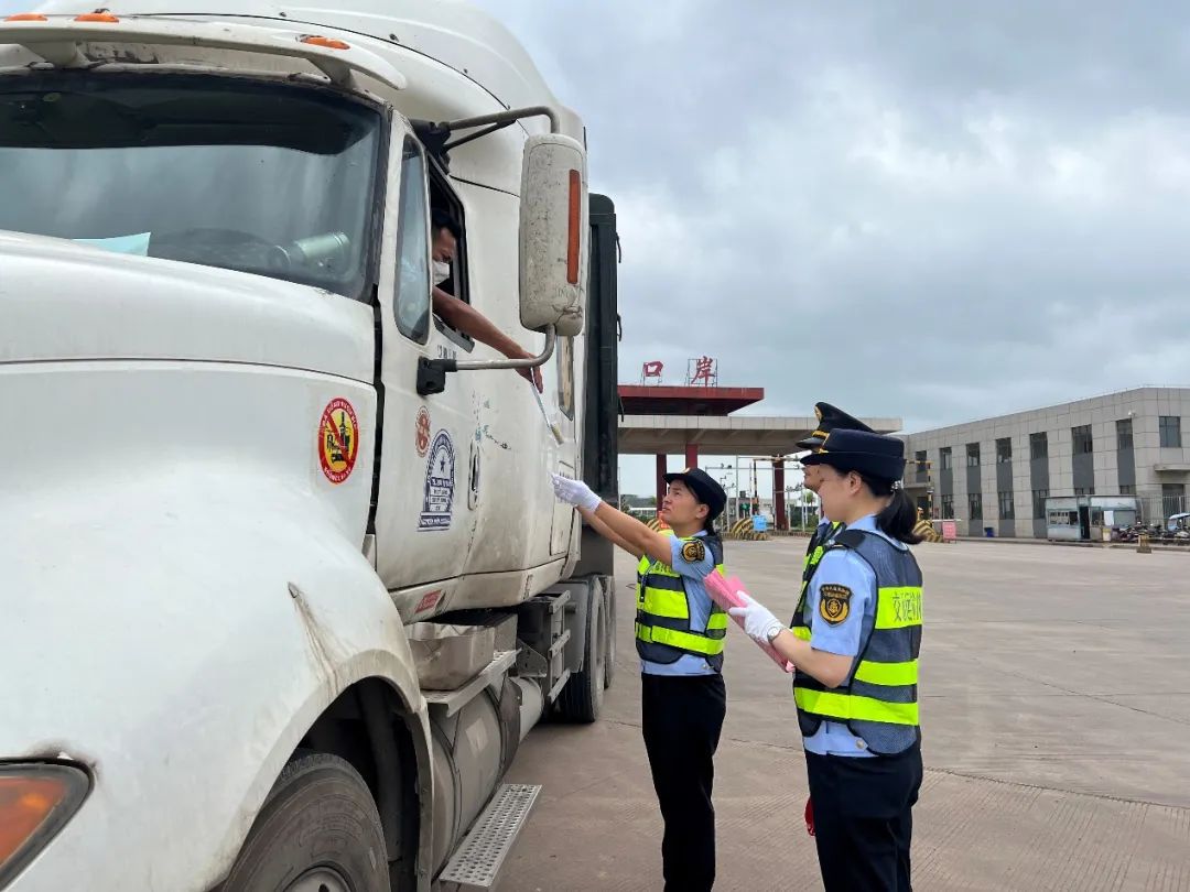 经过该处常态化开展“越南语+行政执法”培训,女子执法队员们基本能用中越双语模式与出入境驾驶员进行交流,对行车许可证申办、国际道路运输法律法规、车辆通关流程等问题答疑解惑,引导出入境车辆顺利通关,得到驾驶员们的充分肯定。执法队员在双语交流的基础上,通过说理式执法,将法律法规以通俗易懂的方式向当事人解释宣传,进一步拉近了与从业人员的距离,争取理解与支持,减少抵触情绪,从根本上杜绝执法方式简单僵化、执法粗暴、执法作风不优的问题。
