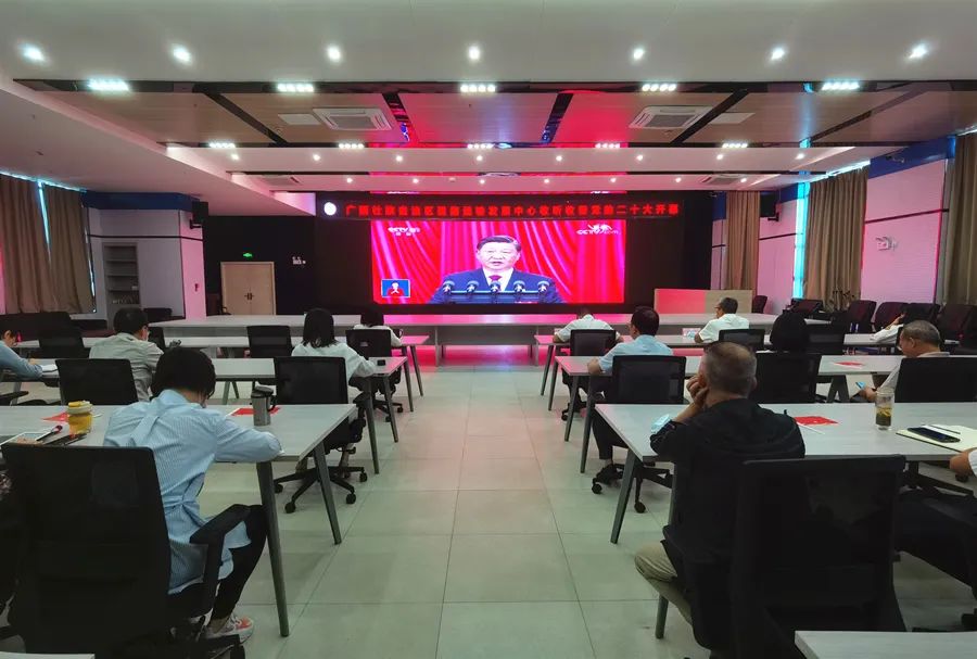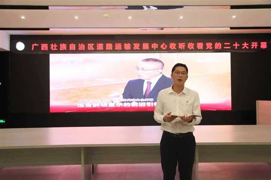 自治区道路运输发展中心共50名党员干部和职工集中收看了党的二十大开幕会。(蔡满园 摄)