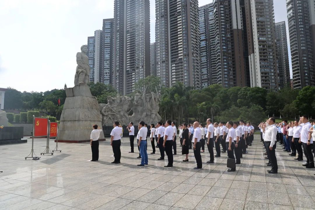 读书班学员在百色·龙州起义纪念群雕广场上重温入党誓词。