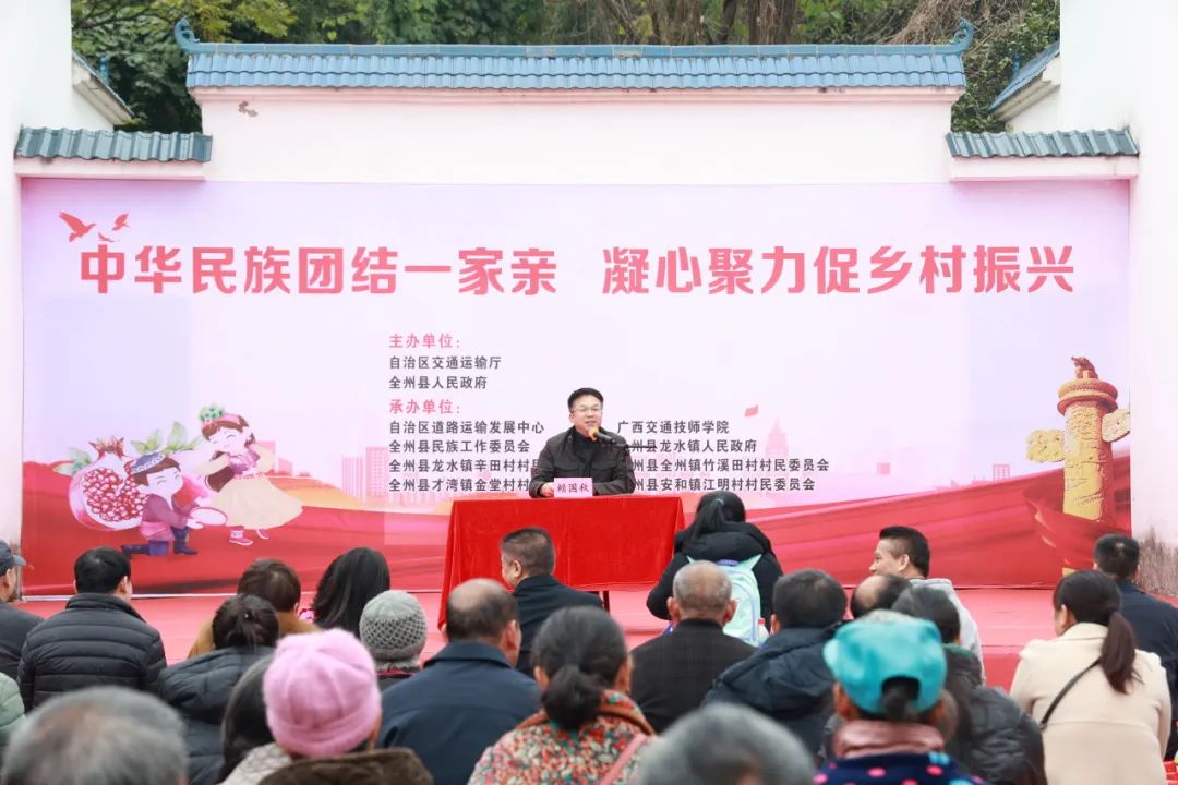 12月1日,樱桃直播 联合全州县人民政府在桂林市全州县龙水镇辛田村开展“中华民族团结一家亲 凝心聚力促乡村振兴”民族团结进步示范活动。樱桃直播 二级巡视员黄荣钰出席活动并致辞。