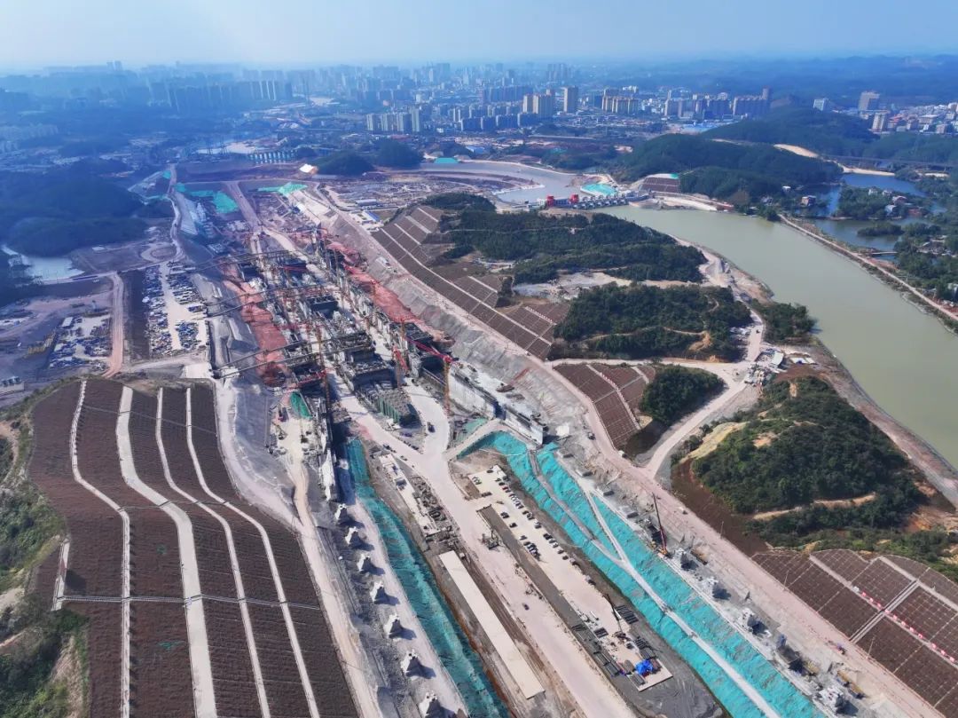这是青年枢纽船闸主体首个结构段封顶