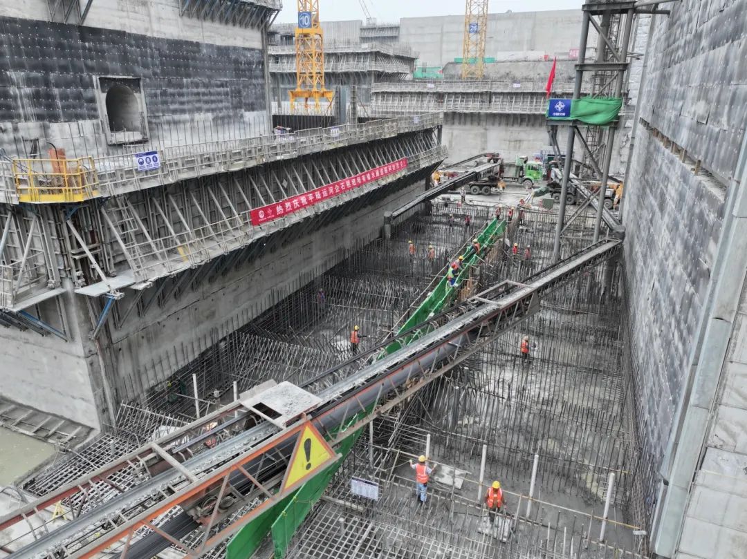 为高标准高质量高效率推进企石枢纽输水廊道建设,项目建设团队通过利用BIM技术提前介入模板设计和采用施工全过程模拟等数字化手段,创新研发混凝土精确计量设备和适应性强的智能布料系统,攻克了上闸首“鹅颈段”输水廊道最大高差26.7米、大体积混凝土浇筑、智能温控和防裂技术要求高等难题,实现了混凝土表面平整度高于行业规范标准。