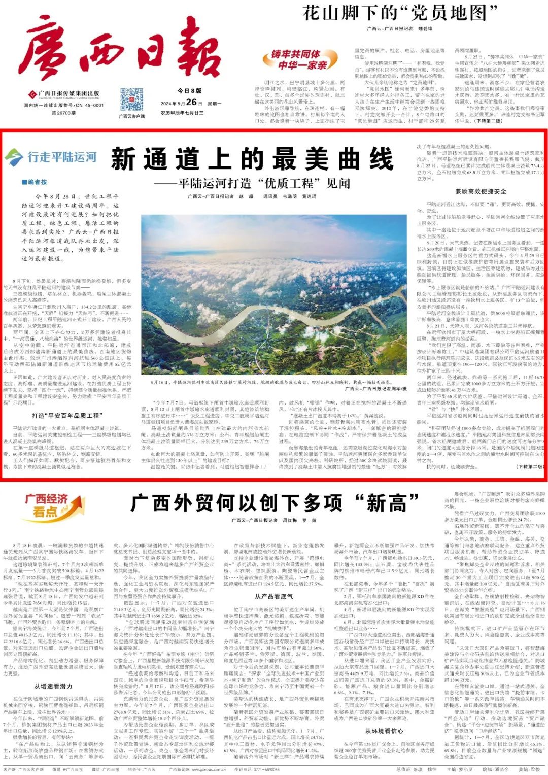 两年间,全区上下齐心协力,2万多名建设者投身其中,“一河贯通、八桂向海”的世界级运河,雄姿初显。