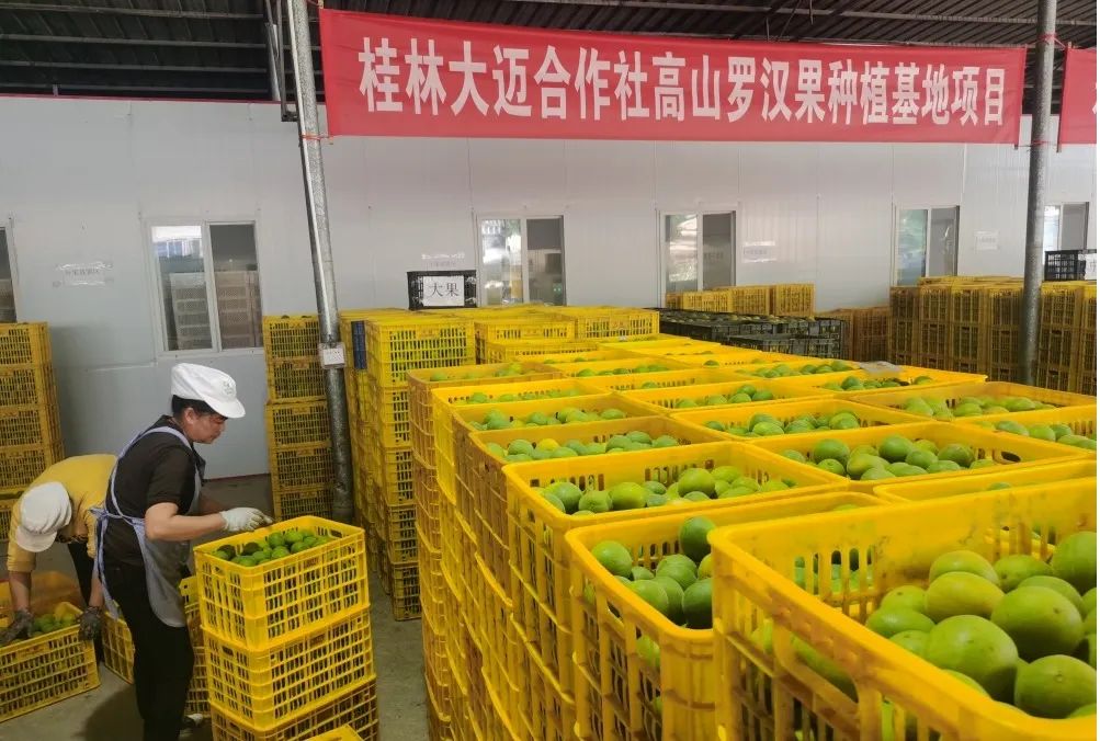 而在国道321线宛田公路左侧的桂林大迈罗汉果专业合作社加工生产间里,几名工人正忙着把一箱箱加工好的罗汉果成品搬运装车。罗汉果产业的发展提供了家门口的工作岗位,他们在务工挣钱的同时,也能陪伴家人了。