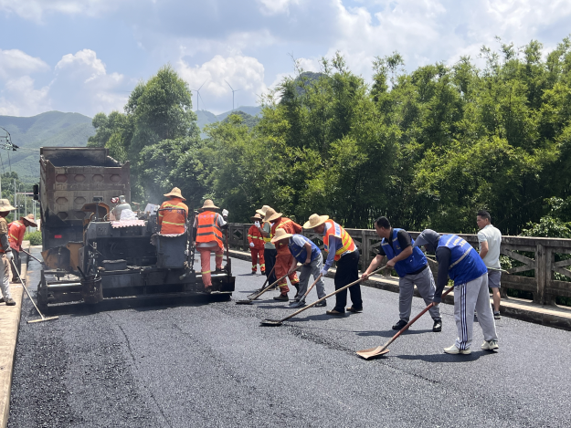 此次修整行动,该养护中心提前进行实地调研,投入乡村振兴专项资金对天马桥损坏桥面进行修整。修整现场,该养护中心工作人员与该村干部分工明确,共同清理桥面的坑洼处和沙土碎石,喷洒乳化沥青,待装料车辆把沥青物料倒到路面后,再用铁锹和铲子把物料均匀摊平,最后由机手们驾驶着压路机、洒布机有序铺补压紧……经过大家的共同努力,完成沥青铺补500平方米,桥面焕然一新。