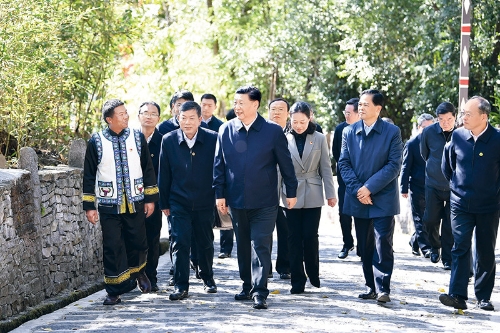 2020年1月19日至21日,中共中央总书记、国家主席、中央军委主席习近平来到云南,看望慰问各族干部群众,向全国人民致以新春祝福。这是19日下午,习近平在腾冲市清水乡三家村中寨司莫拉佤族村了解乡村振兴和建设少数民族特色村寨情况。 新华社记者 谢环驰/摄