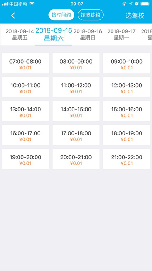 (图为“南宁驾培”APP自主预约学车时间页面)