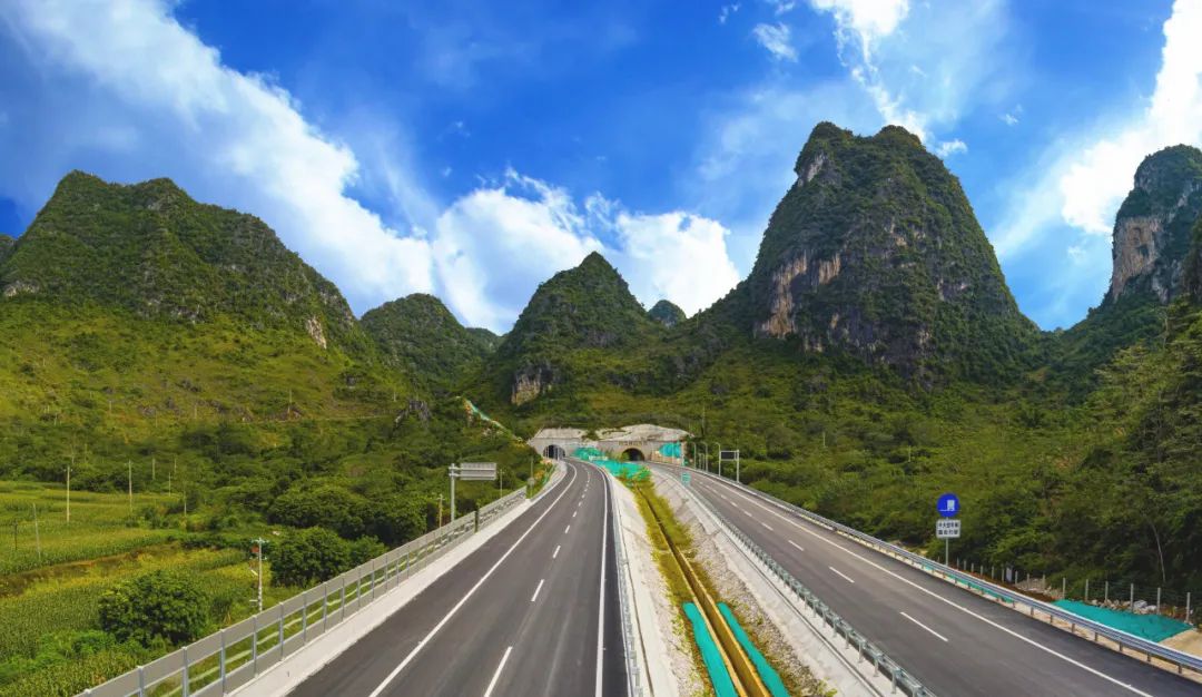 据了解,岳圩口岸联线公路是《广西高速公路网规划(2018—2030年)》中的“联20”线,路线起点位于百色靖西市同德乡,设岳圩枢纽互通与合浦(山口)至那坡(弄内)高速公路相连,终点直达中越边界岳圩口岸。项目主线全长8.9公里,采用双向四车道高速公路标准建设,设计行车速度为每小时100公里。项目建成后,边境贸易物流车辆从靖西到岳圩口岸的行车时间缩短至20分钟内,极大改善了岳圩镇等边境地区的交通运输条件。同时,将龙邦、岳圩、平孟等3个口岸连成一体,进一步提升跨境运输能力,打通中越边境口岸跨境运输的“最后一公里”,对加强与越南合作交流,促进对外贸易和地方经济发展,实现兴边富民具有重大战略意义。