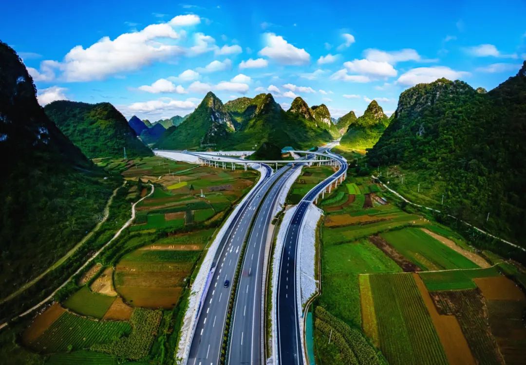 岳圩口岸联线公路岳圩枢纽互通。(广西交通投资集团 供图)