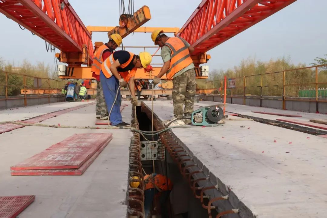 为确保T梁架设安全高效推进,项目建设团队创新推行安全“穿透式”管理模式,通过强化项目部与现场作业班组的深度融合,构建网格化责任体系,并安排专职安全员全程监督架梁作业。面对复杂的交叉作业环境,项目建设团队科学统筹施工组织,优化资源调配,对运梁、提梁、架梁等关键工序实施全流程管控,严格落实施工标准,实现安全与质量双达标。